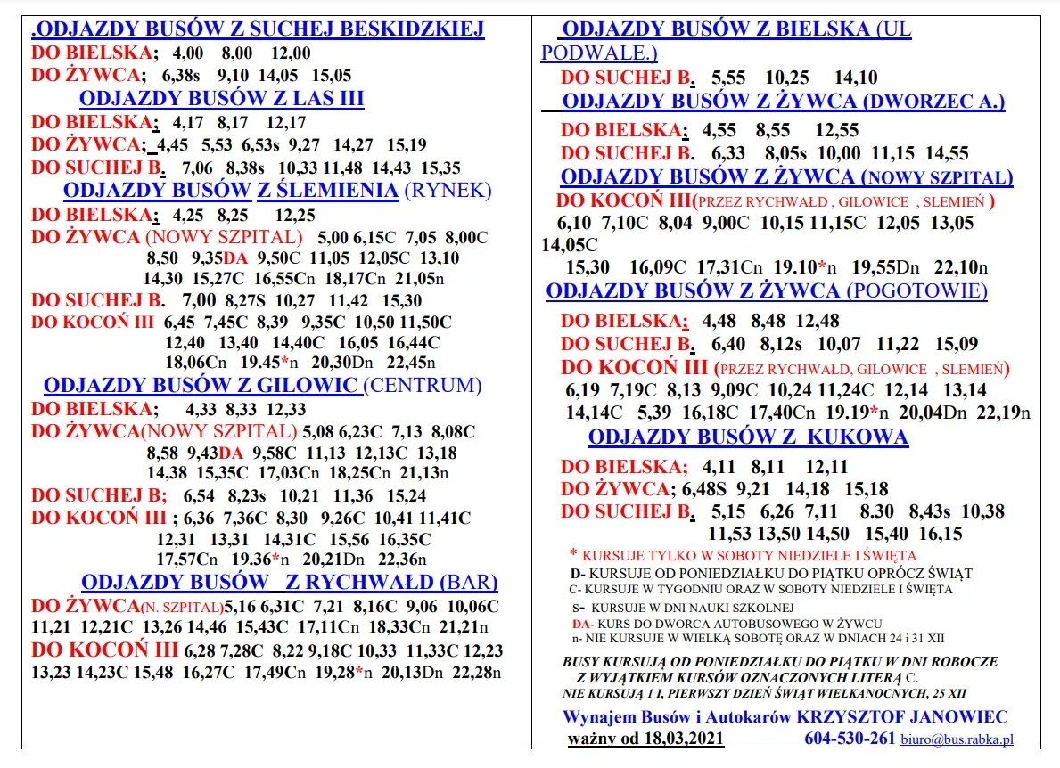 Godziny powrotów busów z Buska-Zdroju do Kazimierzy Wielkiej